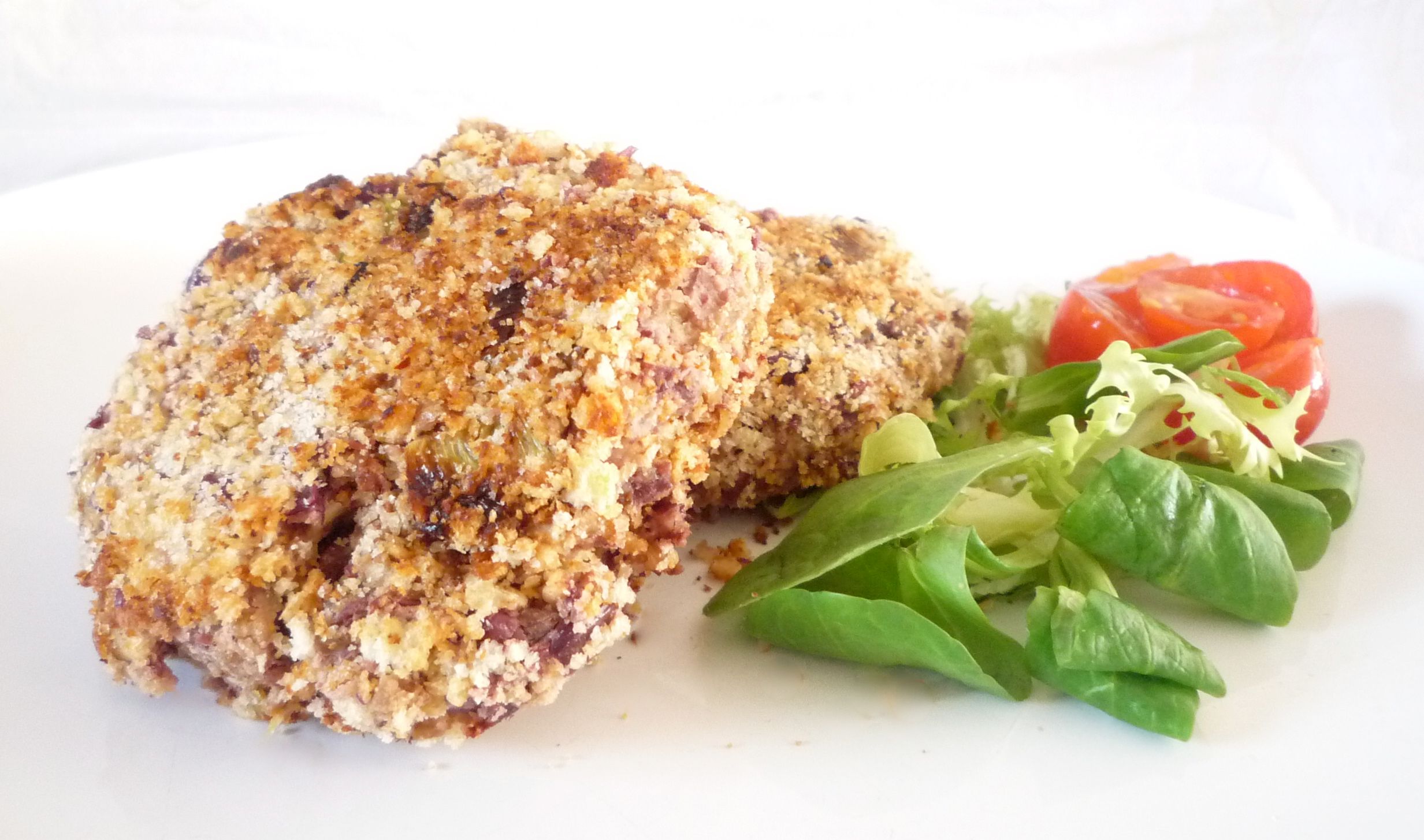 Bean Burgers #ratingval# from #reviews# reviews Print Recipe Type: Vegan Prep time: 10 mins Cook time: 10 mins Total time: 20 mins Serves: 3-6 These bean burgers are quick and cheap to prepare and very nutritious – you can’t really go wrong! They’re delicious in a burger bap with shredded lettuce, slices of tomato and vegan mayo, or stand alone with salad and chips. This recipe makes 6 large burgers. Ingredients 1 onion, peeled and chopped OR 7 spring onions, peeled and chopped 1 garlic clove, peeled and crushed 2 x 425 g/15 oz tins of cooked kidney beans, rinsed and drained (approx) 60 g/2 oz rolled oats 2 tablespoons soy sauce or tamari Hot chilli powder/chilli flakes, to taste (optional) 100 g/4 oz dried breadcrumbs (the packet variety makes things easier) Vegetable or sunflower oil Instructions Heat approx. 1 tablespoon oil in a large saucepan, add the onion and garlic and stir. Cover and leave to cook over a moderate heat for 5 minutes, stirring occasionally. Remove from the heat. Drain and mash the beans in a bowl. Add the oats, soy sauce and onion/garlic mix and knead well by hand. Form the mixture into 6 burgers and coat with the dried breadcrumbs. In a lightly oiled skillet cook the burgers on both sides until browned over a high heat (approx 4 minutes each side). Reduce the heat to low and cook for a further 3 minutes each side to ensure they are cooked through. Serve in burger baps with thinly shredded lettuce, slices of tomatoes and vegan mayo, or with salad and chips. WordPress Recipe Plugin and Microformatting by EasyRecipe 2.2.6