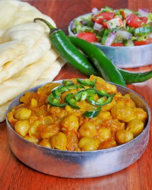 Chickpea Curry Recipe Type: Vegan Prep time: 10 mins Cook time: 30 mins Total time: 40 mins Serves: 2-3 This chickpea curry is easy to prepare and uses simple ingredients. The addition of coriander leaves before serving adds a fresh, zingy flavour. Ingredients 1 tablespoon rapeseed oil 1 medium onion 2/3 clove garlic 1 teaspoon cumin seeds 1 teaspoon nigella/mustard seeds 1 teaspoon ground coriander half teaspoon chilli flakes 1 tin/packet (400 g) chopped tomatoes 50 ml water 1 tin/packet (390 g) chickpeas salt black pepper lemon juice (1/2 lemon) fresh coriander Instructions Fry the onion until brown, add the garlic and all the spices, stirring for a few minutes. Add the tomatoes, water, chickpeas, salt and pepper and cook under low heat for about half an hour. Add the lemon juice and a bunch of fresh coriander. Serve with rice and a green salad. 2.2.6