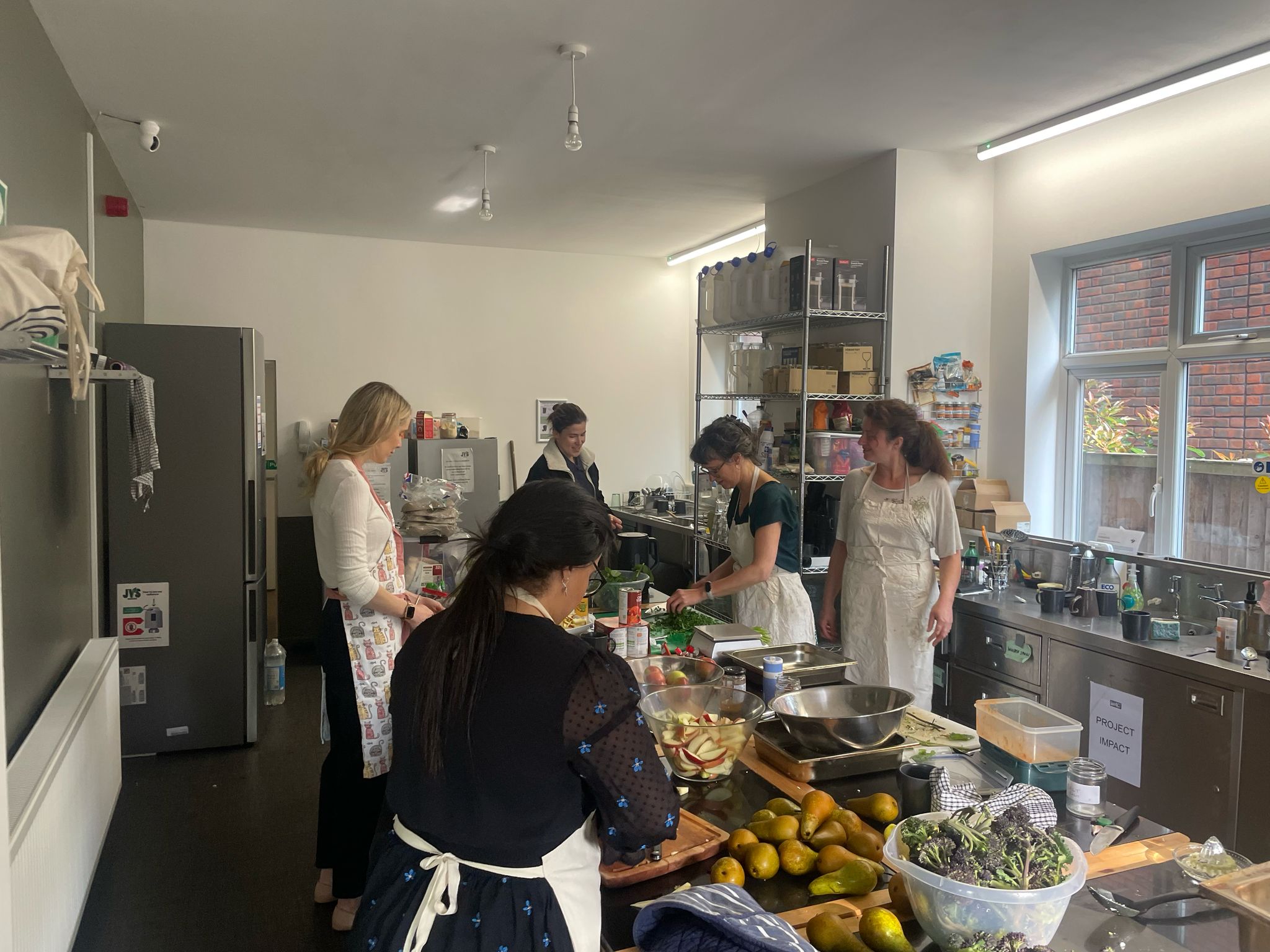 Last Friday 25th April 2025, we cooked up a seasonal feast inspired by our foraging walk, using lots of fresh finds. The menu included wild garlic, nettle and pea soup. Additionally, butterbean and tomato stew with herby asparagus freekeh, roasted cauliflower with tahini, and a delicious apple and pear crumble for dessert. Massive thanks and shout out to our brilliant volunteers who helped bring it all together. If you are quick, you can still spot wild garlic in shady woodland spots for a couple more weeks. We were lucky to be joined by Sean O’Callaghan, better known as Fat Gay Vegan . Sean is a longtime vegan, blogger and community organiser working with Made in Hackney, a food security charity based in Stamford Hill. Sean shared stories about their amazing free vegan cooking classes and masterclasses , which cover everything from Turkish recipes to fermentation. Money raised from the paid sessions helps keep the free classes running. Sean also highlighted their meal delivery service, which sends out 400 nourishing vegan meals every week to those who need them most. We are buzzing to announce an upcoming collabasterclass between JVS and Made in Hackney. Stay tuned! Additional opportunities for giving If you’d like to support the charity, Nivi, founder of Nutok Cheese, is running a half marathon to raise funds. You can donate here . We shared also about our community garden and food growing project, how you can get involved and details of our fundraiser .