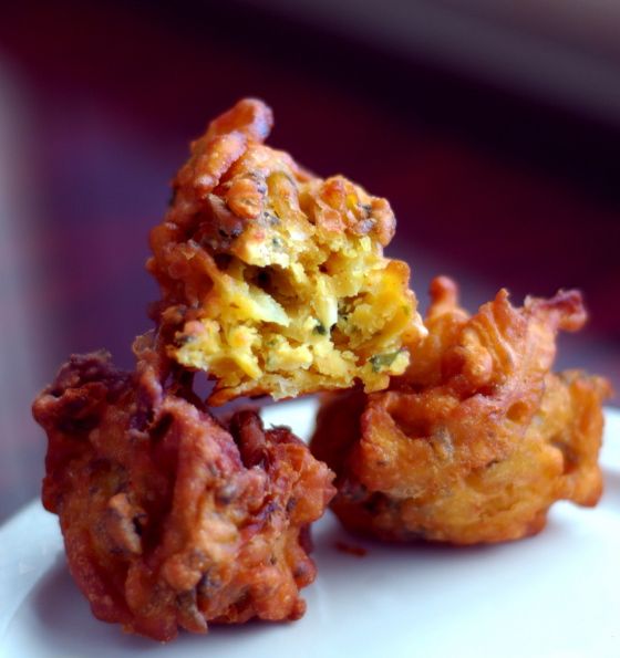 Cumin Pakoras Prep time: 15 mins Cook time: 1 hour 20 mins Total time: 1 hour 35 mins Serves: Makes approx. 20 pakoras These Indian pakoras are perfect for a party. Cumin has a very distinctive flavour. Some pakora recipes use them but others do not. You may choose to flavour the pakoras using alternative spices. Ingredients 2 largish onions plus 1 large courgette (chopped finely/grated) OR 2 largish onions and 2 small potatoes (chopped finely/grated) OR 3 largish onions (chopped finely/grated) 175 g/6 oz gram flour ½ teaspoon salt ¼ teaspoon baking powder 1 – 2 teaspoons cumin seeds ½ – 1½ teaspoons chilli powder 200 ml water 2 cloves garlic, crushed vegetable oil for deep frying (approx. 1 litre) ½ teaspoon turmeric (optional) 1 teaspoon garam massala (optional) 1 teaspoon ground coriander (optional) few sprigs of fresh coriander, to serve lemon wedges, to serve lettuce, to serve Instructions Place the gram flour, salt, baking powder, cumin seeds, chilli powder (plus any additional spices you choose) into a large mixing bowl and mix well together Make a well in the centre of the mixture and gradually stir in the water, mixing thoroughly to form a batter. Stir in the crushed garlic and the chopped/grated vegetables and leave the mixture to infuse for 10 minutes. (The mixture should be a little runny but not too much so. If you feel you need some more vegetables add some more. Do not make too thick however.) Pour vegetable oil into a chip pan until it reaches the 1/3 mark. Heat to 180°C/350°F or until you test that a little of the mixture starts frying nicely. Using a dessertpoon (1 dessertspoon of mixture = 1 pakora) carefully start placing the mixture into the hot oil. To do this, lower one spoonful of mixture into the oil and gently remove the soon. Do another, making sure they do not join together. You will be able to cook approx. 5 pakoras “per fry”. Leave the 5 cooking pakoras for about 8 – 10 minutes. Then turn them once and allow the other sides to cook (if not covered in oil), also for 8 – 10 minutes. They should be well-cooked. Remove the pakoras once they are golden brown (using a slotted spoon) and place them on a thick layer of kitchen paper. Clear the remnants of the first pakora batch from the hot oil and then put the next batch of 5 in to cook. You will find the mixture can be fried in about 4 batches, so allow just over an hour for frying. (You will be able to get on with other things in the kitchen during this time.) Serve hot (or cold) on a bed of fresh lettuce, sprinkled with course salt and garnished with lemon wedges and sprigs of coriander. 3.2.1230