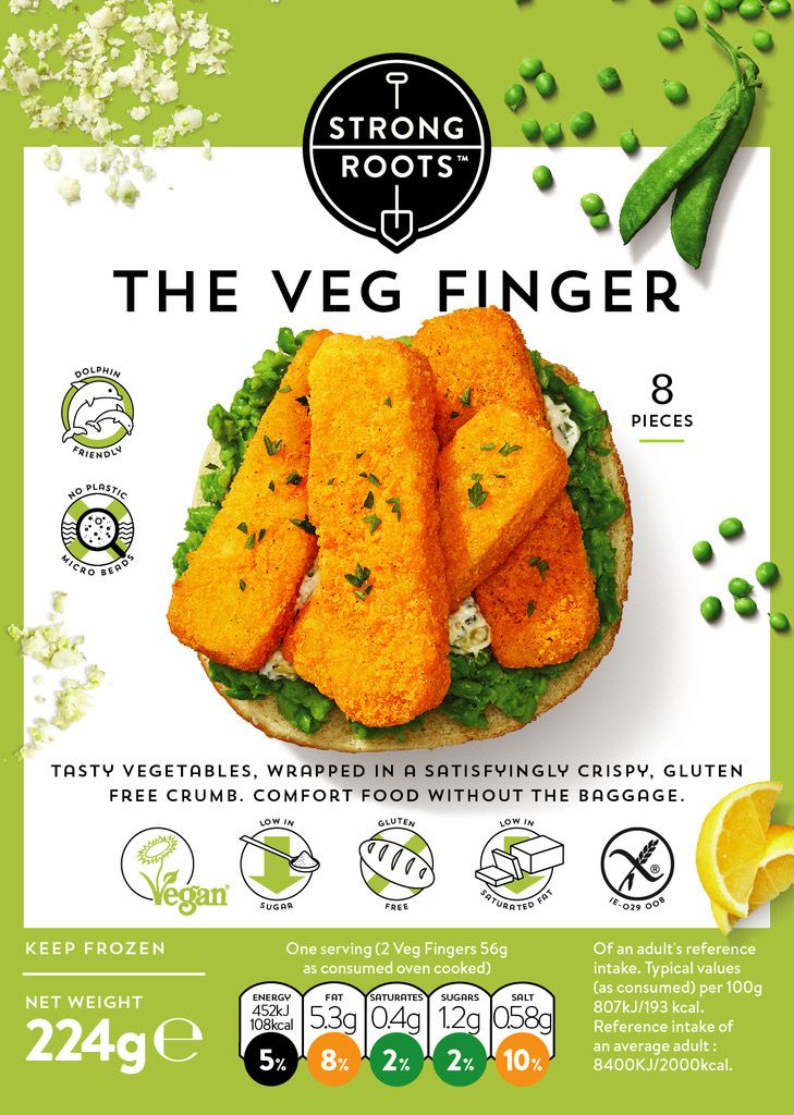 To coincide with National Vegetarian Week this week, Strong Roots has announced a new dolphin-friendly delicious option that doesn’t contribute to the destruction of the planet’s fisheries… The Veg Finger. Made from 100% nutrient-packed root vegetables, and wrapped in a gluten-free crumb, the Veg Finger is being rolled out in your local freezer aisle across the UK and Ireland, starting today. It’s comfort food, without the nets. Delicious and sustainably farmed cauliflower, parsnips, and onions. With UK and Irish customers already making the move from meat, cutting out fish is next on the menu. Fish fingers are the UK’s fourth favourite food. Recent coverage of marine destruction and overfishing has prompted many consumers to extricate fish from their diets. No surprise – the stats are damning: according to Netflix’s Seaspiracy , over 300,000 whales and dolphins are killed each year as bycatch; 30,000 sharks are killed every hour; and 250,000 sea turtles are injured or killed annually in the U.S. alone. The UK and Irish governments have already started taking action to protect their oceans and marine life, ditching the plastic straw and pledging to establish “Marine Protected Areas”. As anti-fishing trends continue, Strong Roots is prepared for consumers across the UK and Ireland to ditch the fish in favour of the freezer aisle. It’s already happening – the plant-based sector in the UK has grown 40% in the last five years. Strong Roots recently became only the first Irish plant-based brand to get a B-Corp certification. It recognises that the certification process, important as a standalone goal, was the amendment to our company’s Constitution, which enshrines its environmental and social responsibilities at the highest possible level. Sam sought to weave sustainability goals into the Strong Roots DNA and ensure that the mission is embraced across the whole business. The Veg Finger will join Strong Roots’ line of plant-based burgers, root vegetables and freezer favorites like Cauliflower Hash Browns and Sweet Potato Fries. Strong Roots is stocked by all major UK retailers, including Tesco, Asda, Sainsburys, Waitrose, Marks & Spencer, Morrisons, Coop, Ocado, Amazon, Wholefoods and independent stores. Join Strong Roots, in giving Big Fish, The Veg Finger. About Strong Roots: Strong Roots was founded in 2015 by Samuel Dennigan. The company offers healthy, plant-based frozen food products including Oven Baked Sweet Potato Fries, Spinach Bites, and Kale & Quinoa Burgers. Its products are sold in over 8,000 stores worldwide including major retailers in Ireland, the UK, and the U.S., as well as Singapore, Iceland, the United Arab Emirates, Bahrain, and Qatar. It has sold over 8 million packs of its foods worldwide. StrongRoots.com