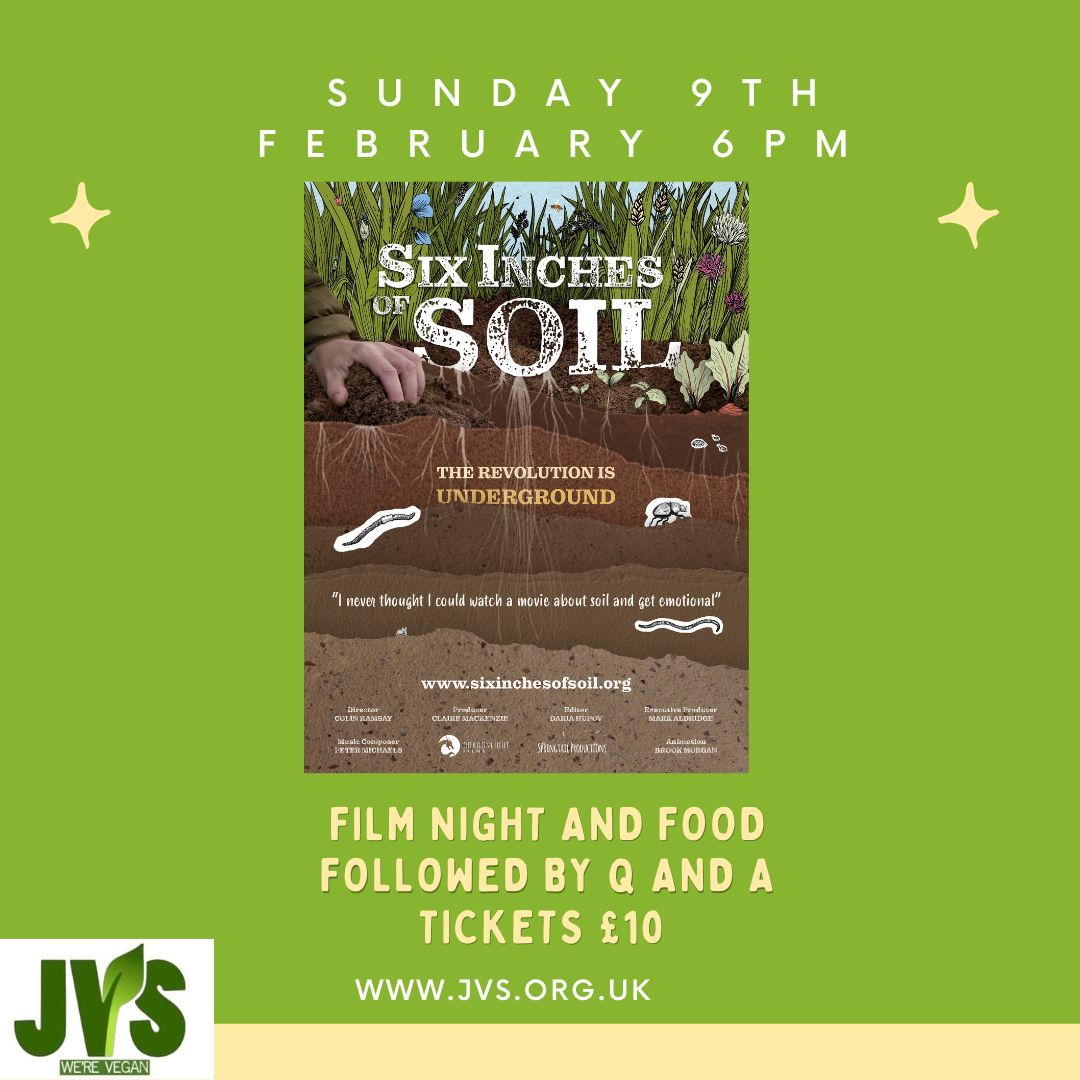 To mark Tu B’Shevat (New Year of the trees) we are screening Six Inches of Soil film. The film tells the story of remarkable farmers, communities, small businesses, chefs and entrepreneurs who are leading the way to transform how our food is produced and consumed. As part of the evening there will be a vegan stew made from locally sourced and organic vegetables. The screening will be followed by a Q and A with Dr Lucy Michaels, researcher and impact producer for the film. Arrive between 6 and 6.25pm for mingling and a bowl of stew. Screening will start at 6.30pm followed by a Q and A and more mingling. The event will finish by around 9/9.30pm The £10 per head is to cover our costs, including the licensing fee. Any profit made on top of this will go directly to the Six Inches of Soil non-profit organisation.