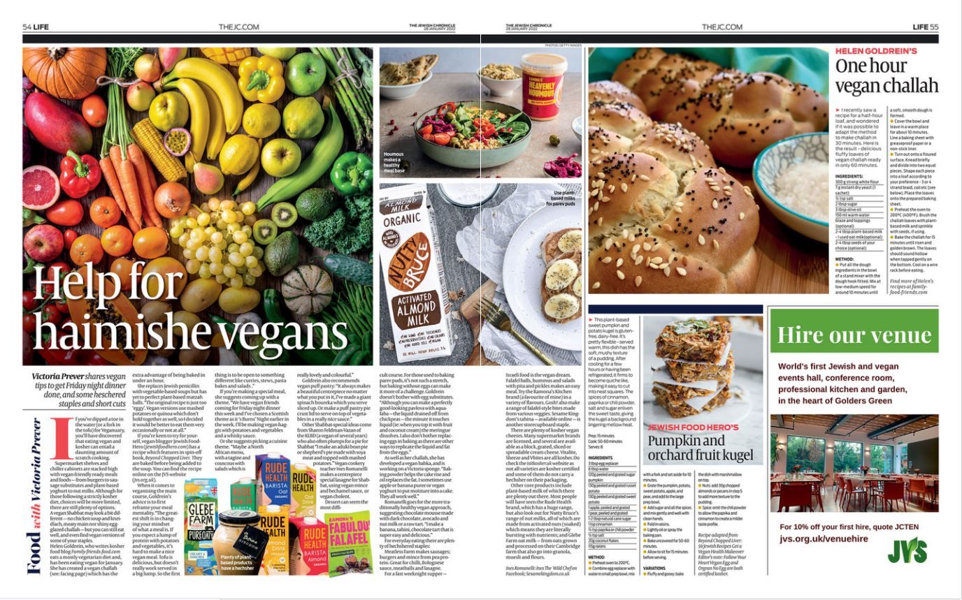Hints and hacks for Friday night and everyday dining from the Jewish Chronicle’s Victoria Prever in this, the second splash of the month on Jewish veganism . Looking for more information? See our recipe section and our special section on Jewish veganism. Learn how to make vegan challah . Why not try this recipe for chopped living ?