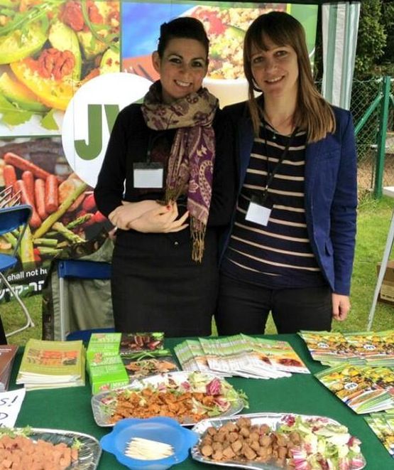 The fourth annual Gefiltefest , held at the London Jewish Cultural Centre (at Ivy House) on Sunday 19 May attracted hundreds of visitors, including former Labour MP David Milliband, for a day of cooking demonstrations, charity and business promotion, and tasty food. Speaking about the festival to the Hendon & Finchey Times, festival organiser Michael Leventhal said: “So many people are so excited and positive about the festival and every year we are expanding. It feels like we’re changing the way Jewish people think about food.” The JVS had a stand in the garden, giving away hundreds of leaflets, magazines and tasty meat-free food samples. On offer were Fry’s Traditional Vegetarian Sausages, Vegetarian Schnitzels and Vegetarian Slicing Sausage (Polony). The reaction from guests was positive and many stopped to talk to the JVS team about Jewish vegetarianism – everything from how we treat animals and meat’s impact on the planet, to recipes for vegetarian brisket and meat-free cholent. Many thanks to Fry’s for the delicious food!