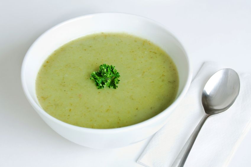 Leek and Potato Soup Prep time: 30 mins Cook time: 30 mins Total time: 1 hour Serves: 4 Perfect for lunch on a cold winters day, this hearty Leek and Potato Soup recipe uses the most basic ingredients and is straightforward to prepare. Ingredients 3 large potatoes 1 leek 1½ vegetable stock cubes 200 ml soya milk 1 tbsp olive oil salt course ground black pepper Instructions Peel the potatoes and cut them into 2 cm cubes. Cut the leek into thin round slices. Heat some olive oil in a saucepan over a medium heat and fry the potato and leek for about 3 minutes, mixing constantly. In a measuring jug mix 750 ml boiled water together with the stock cubes and then add this to the saucepan. Bring everything to the boil over a high heat then immediately reduce the heat and simmer for approximately 20 minutes, until the leek and potato are soft. Pour the mixture into a liquidiser or pour it into a measuring jug and use a hand blender to mix well. You may have to do this in several batches. Pour the blended soup back into the saucepan. Add the soya milk, salt and freshly ground pepper. Reheat gently for 3 minutes. Serve with thick crusty bread. 3.2.1230
