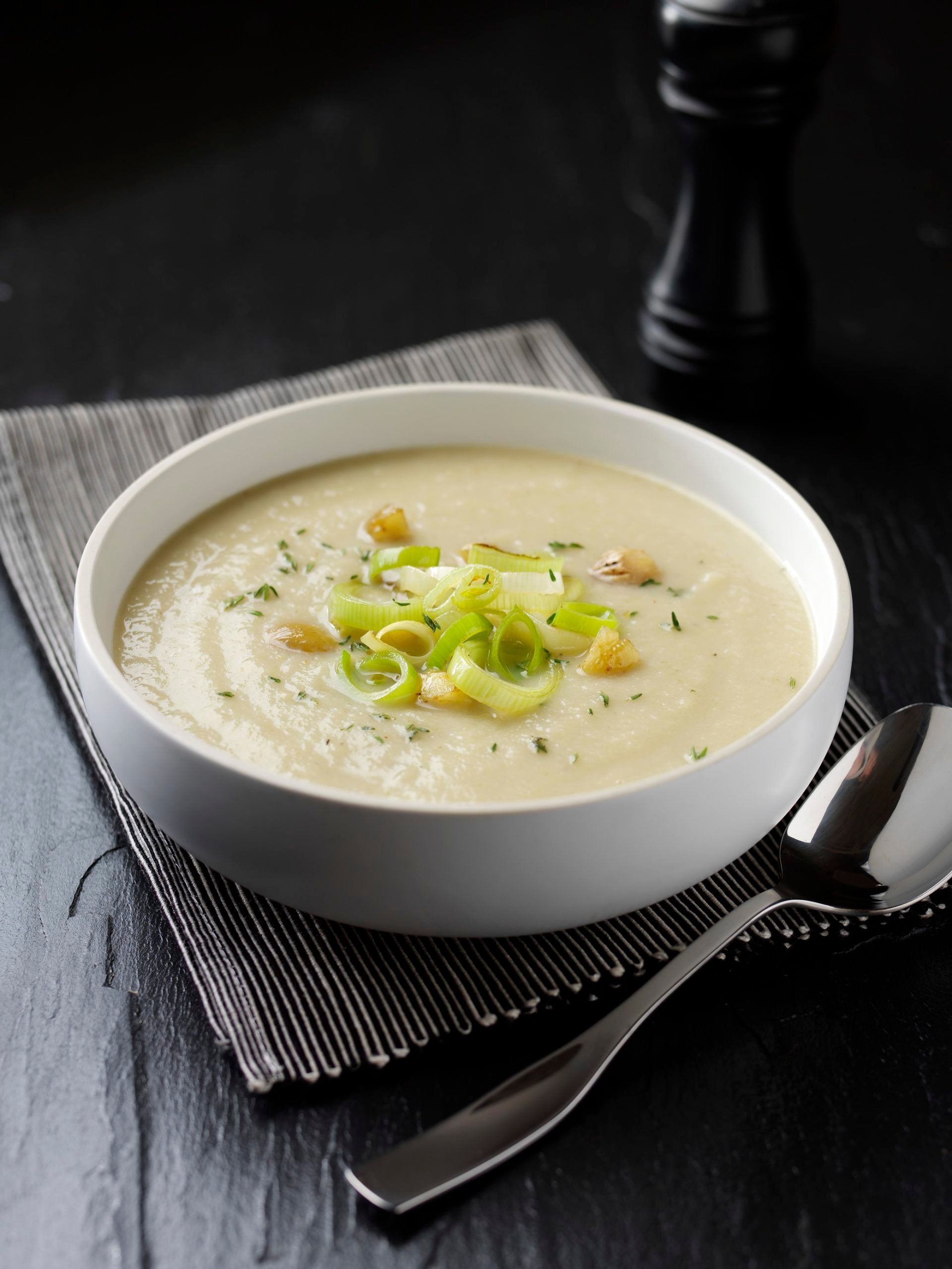Leek, Parsnip & Chestnut Soup Author: Sophie Wright Prep time: 15 mins Cook time: 30 mins Total time: 45 mins Serves: 4-6 I’m a real soup lover and none are complete without the addition of leeks. However, rather than just using leeks as a background flavour, I really want to bring them to life, and pair them with ingredients they really love. Parsnips have a natural sweetness that work perfectly with the mellow flavour of leeks and chestnuts add a creaminess that nothing else will. This is the perfect winter soup that will keep you feeling warm and full all through the day. Ingredients 2 tbsp rapeseed oil 25 g margarine 2 large leeks, sliced and washed including most of the green part 1 stick celery 1 white onion 2 springs fresh thyme, leaves only, plus a few for garnish 3 cloves garlic, peeled and chopped 3 parsnips, peeled, cored and chopped finely 75 g cooked chestnuts, plus a few extra for garnish 1.5 litres vegetable stock Salt and pepper Instructions Add the oil and the margarine to a large pan and turn the heat to medium. Add in the leeks, celery and onion along with the thyme leaves and the peeled garlic. Season with salt and pepper and place a lid on and allow the vegetables to sweat for 10 minutes, stirring a few times in between. Now add the chopped parsnips and the chestnuts along with the stock, bring to the boil and simmer until the parsnips are tender. Make sure the vegetable are completely covered with stock, if not; add a little more as it depends on the size of your pan. After about 20 minutes all the vegetables should be nice and tender. Turn off the heat and blend either in a liquidiser or with a handheld blender. Never over fill your liquidiser so do this in batches and I would recommend leaving the soup to cool slightly before doing this. Blend until completely smooth before returning to the pan and reheating. You can add a little more stock if you feel the mix is too thick 3.2.2802