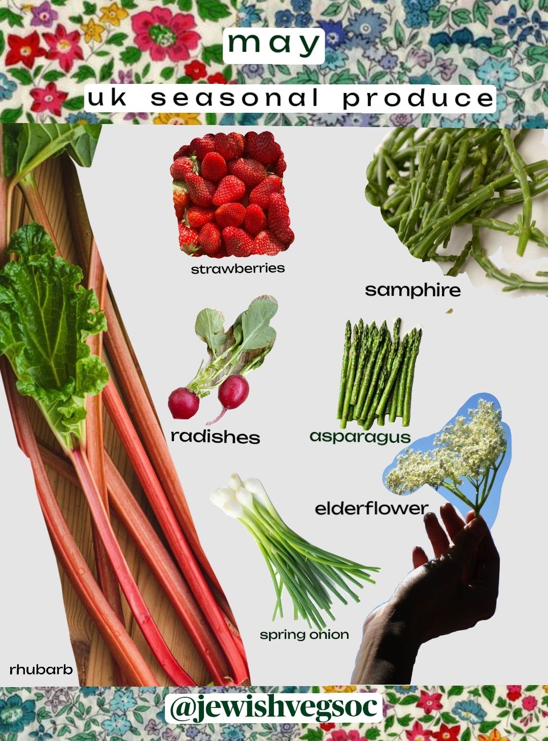 May is peak season for some delightful British produce. Asparagus is stealing the spotlight right now, perfect served grilled and hot or tossed chilled in salads. Strawberries are also finally sweet and juicy enough to snack on all day. Rhubarb is serving up that tart energy for our crumbles. Fresh peas, spinach and new potatoes are giving major spring energy too. Don’t sleep on radishes or spring onions either. Basically, if it’s green and fresh, it’s in. Eat local and enjoy the flavour while it lasts, along with the glorious sunshine we’re having.