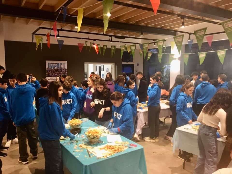 JVS is delighted to have taken part in Mitzvah Day yesterday (17th November 2019) by hosting and supporting Project Impact with a very special cookathon! 50 young participants volunteered to cook some amazing vegan food (a stew and fruit crumble) for over 100 homeless people for Crisis charity, using donated fruit and veg – that would otherwise have gone to waste – from City Harvest London.