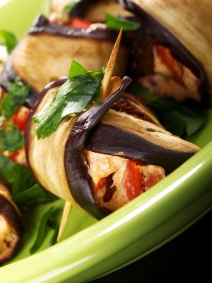 Author: By kind permission of Denise Phillips, Jewish chef and food writer Prep time: 40 mins Cook time: 10 mins Total time: 50 mins Serves: 6 I find that I am cooking nonstop over Pesach as most Kosher restaurants are shut. This recipe is refreshingly simple to prepare and has no complex cooking skills. Do use it for the rest of the year as it does not feature the normal Pesach ingredients and is perfect for a starter or light lunch any time. Serve with a salad or some spring greens if you are enjoying this dish as part of a main vegetarian meal. It can also be made parev by omitting the Parmesan cheese and spreading over some chopped olives, olive oil, salt and pepper combined with the tomato paste and basil – your own tapenade. This recipe can be made in stages and assembled later. It can also be completed and reheated just before the guests are due to arrive. Why not plate it up in advance giving you time to concentrate on your main course? Ingredients 1 large aubergine 6 tablespoons olive oil 6 tablespoons tomato paste 1-2 courgettes – thinly sliced 75 g vegan cheese – grated handful of fresh basil sea salt and freshly ground black pepper Instructions Cut the stem end off the aubergine. Slice lengthways in to 5mm (¼ inch) thick slices: you should have 6. Sprinkle over the salt between each slice. Leave for 30 minutes. Rinse and pat dry. Heat the olive oil in a frying pan. Sauté the aubergine slices on both sides. Drain them on some absorbent paper. Fry the courgettes at the same time or alternatively grill for 3 minutes and turn over and cook until golden. Pre-heat the oven to 200ºC/400ºF/gas mark 6. Spread a tablespoon of tomato paste on to each aubergine layer, followed by a courgette layer. Place some Parmesan cheese over the top. Season with salt and freshly ground black pepper and add some basil leaves. Roll each aubergine slice up in a cylinder secured together with 2 cocktail sticks. Place on a lined oven tray and bake for 10 minutes to warm through. 2.2.1 For more delicious recipes, and details of Denise’s cookery classes, please visit the Denise’s Kitchen website . All classes can be tailored for vegetarians. Denise’s Kitchen Tel : 01923 836 456 Email : denise@jewishcookery.com Web : www.jewishcookery.com