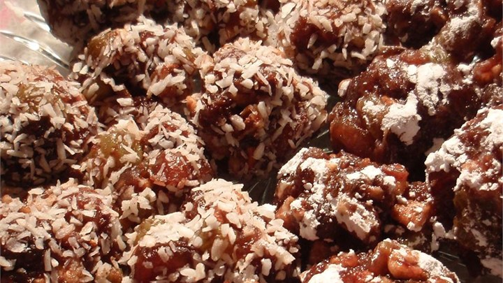 Recipe by: Katy from yummly Pesach: Date Haroset Recipe Type : Dessert Author: Katy Prep time: 45 mins Cook time: 1 hour Total time: 1 hour 45 mins Serves: 40 This haroset recipe is more of a confection, and very different from the apple based variety. It can be stored in the refrigerator for 1 week in a closed container Ingredients 1/2 pound chopped dates 1 cup golden raisins 1/2 cup red wine 1/2 cup coarsely chopped walnuts 1 teaspoon ground cinnamon 1/2 cup confectioners’ sugar Instructions Place the chopped dates and golden raisins in a small saucepan with the wine. Cook over low heat, stirring occasionally, until the fruit thickens to a soft paste. Cool. Stir nuts and cinnamon into the cooled fruit mixture. Form paste into small, bite-size balls. Roll in confectioners’ sugar. 3.5.3208