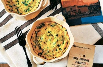 Taken from The Healthy Voyager’s Global Kitchen . Reproduced with kind permission of Carolyn Scott-Hamilton, courtesy of Fair Winds Press. Popeye’s Spinach Soufflé Recipe Type: Vegan Prep time: 15 mins Cook time: 30 mins Total time: 45 mins Serves: 6-8 This soufflé is so fluffy and cheesy, even if you’re not a spinach lover like Popeye, you’ll love this dish! *Gluten Free (use gluten-free flour) Ingredients 5 and a 1/2 tablespoons (77 g) vegan butter, softened, divided 3 tablespoons (24 g) nutritional yeast 2 cups (60 g) stemmed and chopped spinach 2 tablespoons (15 g) all-purpose flour Salt and pepper, to taste 1 cup (235 ml) soya milk 1/3 cup (38 g) shredded vegan mozzarella cheese 2 or 3 cloves garlic, minced 1 cup Omelet Batter (see below) For the Omelet Batter: 2 packages (12 ounces, or 340 g each) silken tofu 1/4 cup (60 ml) plain soya milk 1/4 cup (32 g) nutritional yeast 1/4 cup (32 g) potato starch or cornstarch 2 teaspoons soy sauce, tamari, or liquid aminos 1/4 teaspoon lemon pepper seasoning 1/4 teaspoon ground turmeric Salt and pepper, to taste Blend all the ingredients together until smooth. Instructions Brush the inside of a soufflé or casserole dish with 1 and a 1/2 tablespoons (21 g) of the softened butter. Sprinkle the buttered surface evenly with the nutritional yeast and set aside. In a large saucepan, sauté the spinach until it wilts and the juices have evaporated, 2 to 3 minutes. Preheat the oven to 375°F (190°C, or gas mark 5). In a separate medium saucepan, melt the remaining 4 tablespoons (56 g) butter over medium heat and stir in the flour and salt to taste, whisking constantly, and cook for 30 seconds. Add the milk, still whisking constantly, and cook for about 4 minutes, until the mixture thickens. Add the mozzarella and garlic and stir to combine. Add the spinach and continue cooking over medium heat for 1 minute, and then season with pepper. Whisk in the omelet batter and stir to combine. Pour the mixture into the prepared dish and bake for 30 minutes, or until the soufflé is puffed up and cooked through. 2.2.1