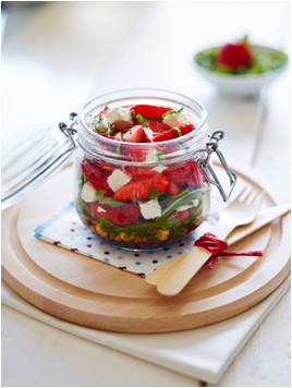 Strawberry Kilner Jar Salad Author: Viva Strawberries [vivastrawberries.com] Prep time: 5 mins Total time: 5 mins Serves: 1 Strawberries may be the quintessential taste of summer, but now you can get some sunshine in your life earlier in the year with Viva strawberries. Grown in the Huelva region of southern Spain and northern Morocco, Viva are sweet, juicy and full of flavour – in fact very similar to a British strawberry. Ingredients 2 tbsp balsamic vinegar 2 tbsp olive oil 100 g chickpeas rinsed and drained handful of rocket 250 g Viva Strawberries, hulled and quartered 100 g feta cubed 1 tbsp shredded mint juice of half a lemon salt and freshly ground black pepper You’ll need a 500g kilner jar or similar. Instructions First pour the balsamic vinegar and olive oil into the jar, and season with a pinch of salt and a generous grind of black pepper. Shake the jar to mix ingredients. Then, beginning with the chickpeas layer up the ingredients within the jar, finishing with the feta and mint. It is important not to have the salad leaves next to the dressing as the vinegar will cause the leaves to wilt. Squeeze the lemon over the top of the salad, and seal the jar. When ready to eat, shake the jar to coat the salad in the dressing and then enjoy straight from the jar. Store upright. 3.2.2929