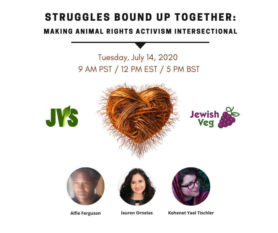 Alfie Ferguson, lauren Ornelas, Kohenet Yael Tischler (JVS) and Sara Eifler (JewishVeg) discuss how the animal rights movement can be actively anti-racist and inclusive…