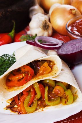 Vegetable and Mixed Bean Burritos #ratingval# from #reviews# reviews Print Recipe Type: Vegan Prep time: 15 mins Cook time: 15 mins Total time: 30 mins Serves: 4 This dish originates in Mexico where thin flour tortillas are wrapped around a delicious filling to form a burrito. The dish is now popular worldwide and variations for the filling include Mexican-style rice, beans or refried beans, meat, cooked vegetables, avocado, salsa, sour cream and cheese. This healthy vegetarian version uses both beans and vegetables. You can make the dish more ‘meaty’ by using fake chicken pieces or veggie mince in addition. Ingredients 4 (20 cm/8 inch) tortilla wraps ½ tablespoon olive oil 1 large garlic clove, minced 1 bell pepper (any colour), seeded and diced OR ½ courgette, cubed 300 g fresh mushrooms, sliced 1 medium onion, diced 1 (400 g) can mixed beans, rinsed and drained 100 g fresh spinach leaves 1 teaspoon cumin powder ½ teaspoon chilli powder Salt and pepper to taste Instructions Heat the olive oil in a large frying pan over a low/medium heat. Add the garlic and stir for 30 seconds. Add the bell pepper (or courgette) and onion, and sauté until soft – about 6 minutes. Mix in the mushrooms and sauté until all the vegetables are tender – about 4 minutes longer. Add the spinach leaves and cook for a further 2 minutes (until the spinach reduces down). Season with salt and pepper. Meanwhile, preheat the oven to 180°C/350°F/gas mark 4. Place the beans in large bowl and mash coarsely with a fork and add the spices. Mix in the cooked vegetables. Place the tortillas on your work surface. Spoon 1/4 of the filling down the centre of each, leaving a 2 inch border at the bottom. Roll up the tortillas by folding the bottom of the circle up to just below the centre, and folding each of the sides to roughly the same point, making sure one overlaps the other. Arrange the wraps, seam side down, on a baking tray. You will find that they will hold together after cooking. Cover the wraps with foil. Bake until the filling is heated through, about 15 minutes. Serve with salad and potato wedges. WordPress Recipe Plugin and Microformatting by EasyRecipe 2.2.6