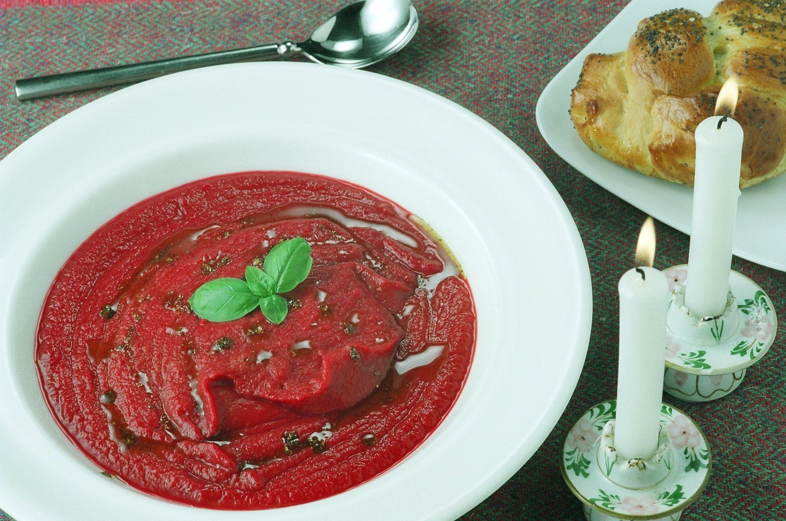 Beetroot and Carrot Soup Author: By kind permission of Denise Phillips, Jewish chef and food writer Prep time: 15 mins Cook time: 30 mins Total time: 45 mins Serves: 6 This colourful nutritious soup is perfect for family style eating whether it is a Yom Tov or, for a change, a different soup for Friday night. Soup is easy to serve and can be made in advance, which makes the cook’s task straightforward. I like to boost the intake of vegetables with a healthy content as much as possible at any opportunity. It’s parev and will freeze. Ingredients 2 tablespoons olive oil 7 raw beetroots – peeled and roughly chopped 900 g carrots – peeled and sliced 2 onions 2 cloves garlic – peeled and sliced 2 sweet potatoes – peeled and roughly chopped 2 litres vegetable stock Salt and pepper – to taste [i]For the garnish[/i] Sprigs of parsley 6 whole coriander seeds Instructions Heat the olive oil in a deep saucepan. Fry the onions and garlic for about 5 minutes until soft. Add the carrots, beetroot, sweet potatoes, and vegetable stock. Bring to the boil and simmer for about 30 minutes or until the vegetables are soft. Pour into a blender and whiz until smooth. Return to the saucepan and reheat. Season to taste. Fry the whole coriander seeds in a dry frying pan for 2 minutes until slightly golden. Remove and crush with a rolling pin or pestle and mortar. [i]To serve the stylish way[/i]: Garnish with sprigs of parsley and crushed coriander 3.2.1255 For more delicious recipes, and details of Denise’s cookery classes, please visit the Denise’s Kitchen website . All classes can be tailored for vegetarians. Denise’s Kitchen Tel : 01923 836 456 Email : denise@jewishcookery.com Web : www.jewishcookery.com